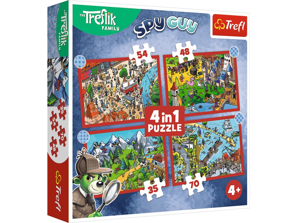 Rôzny počet dielikov umožňuje zábavu pre mladšie aj o niečo staršie deti. 4 puzzle v 1 balení - obsahujú 35, 48, 54 a 70 dielikov.