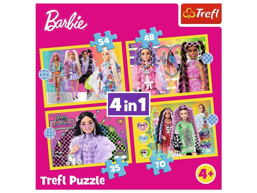 Trefl Puzzle 4v1 - Šťastný svet Barbie / Mattel, Barbie