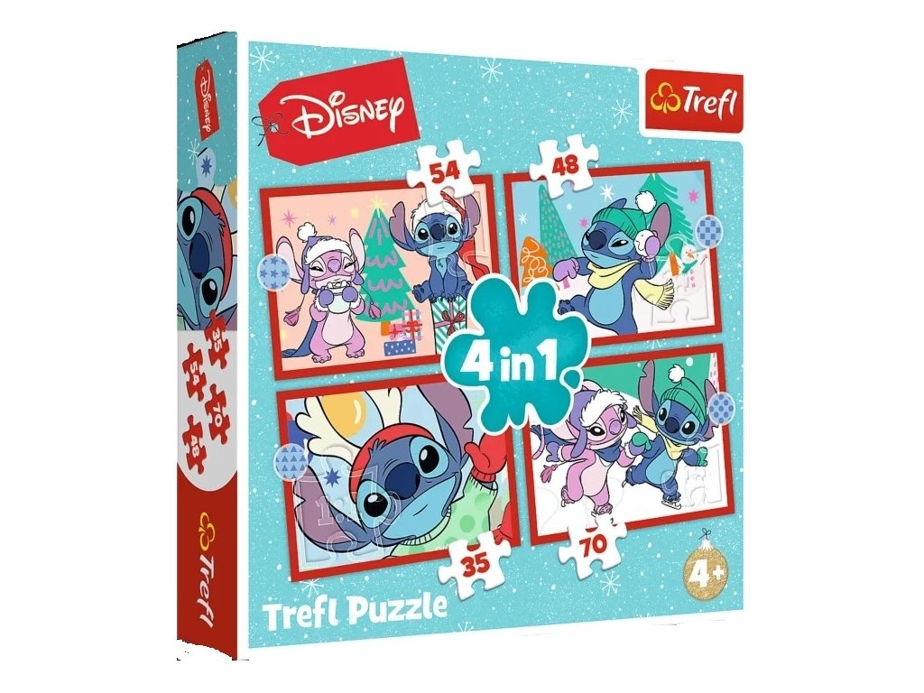 Vianočné puzzle Lilo & Stitch je kolekcia štyroch samostatných puzzle pre deti, navrhnutá pre mladých fanúšikov dobrodružstiev Lilo a Stitcha. Po zostavení puzzle vytvoria obrázky s rozmermi 285 x 205 mm. Rôzny počet dielikov umožňuje zábavu pre mladšie aj o niečo staršie deti.