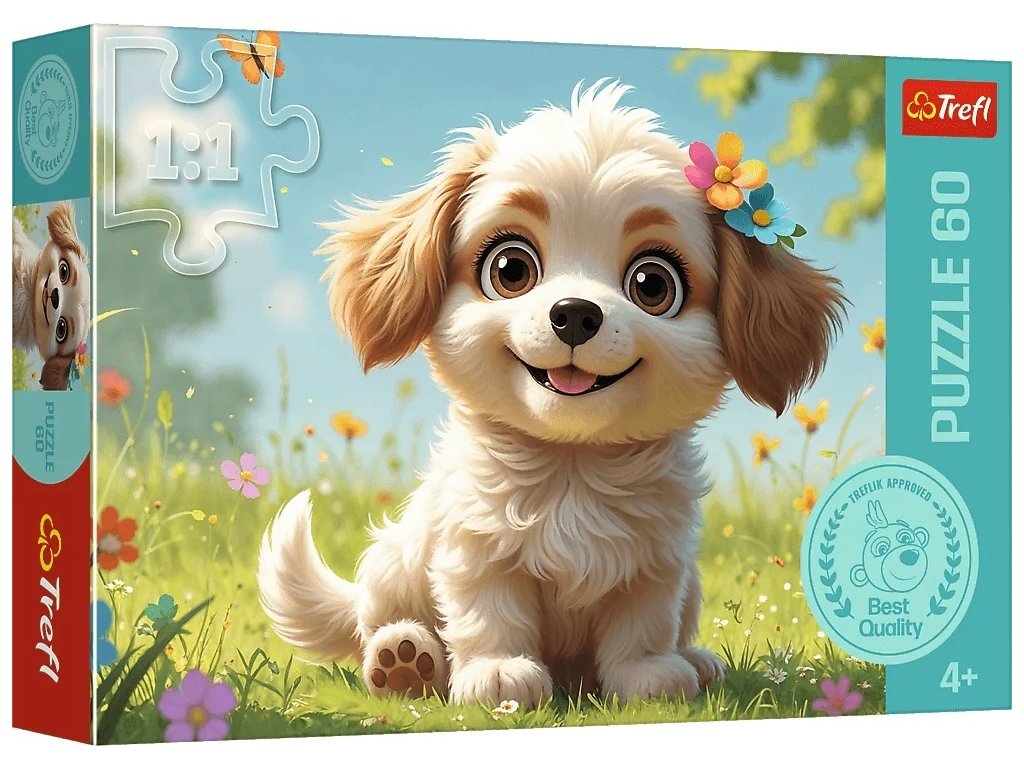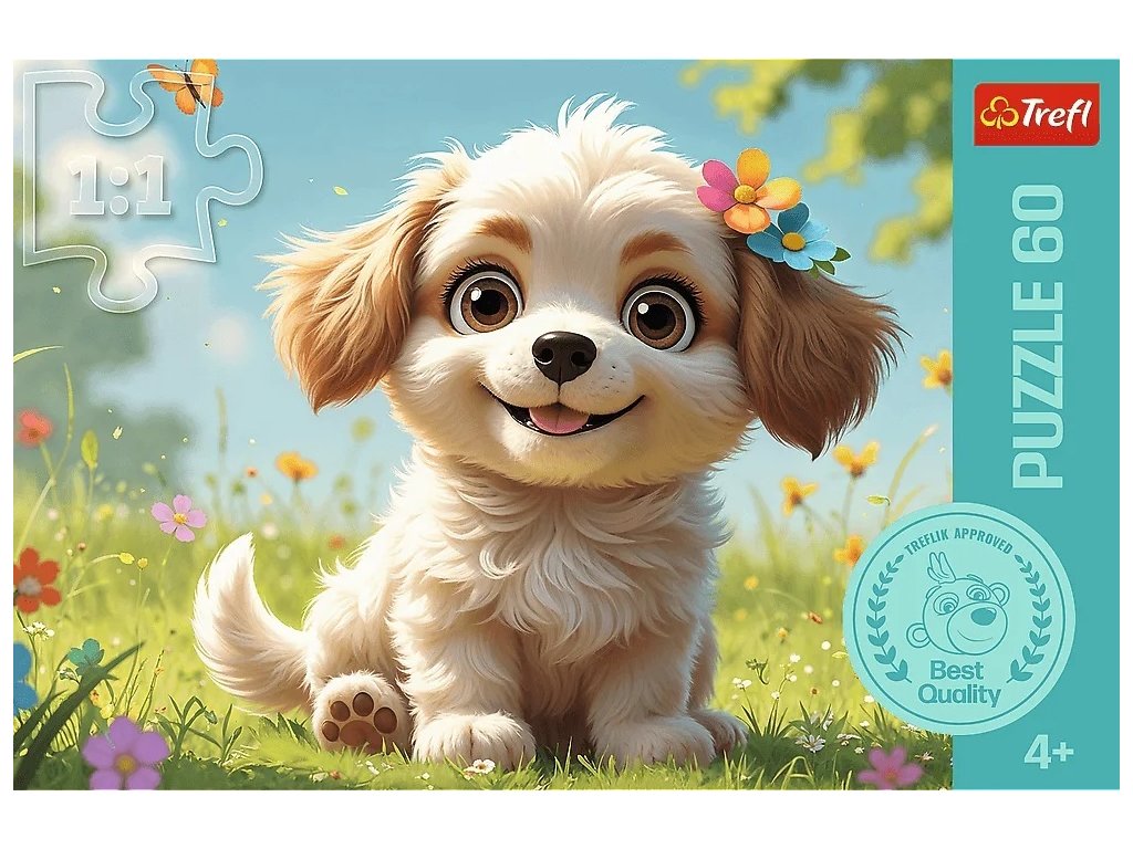 60-dielna skladačka navrhnutá pre mladých fanúšikov zvierat. Skladačka zobrazuje usmiate šteniatko na lúke. Po zostavení má výsledný obrázok rozmery 330 x 220 mm.