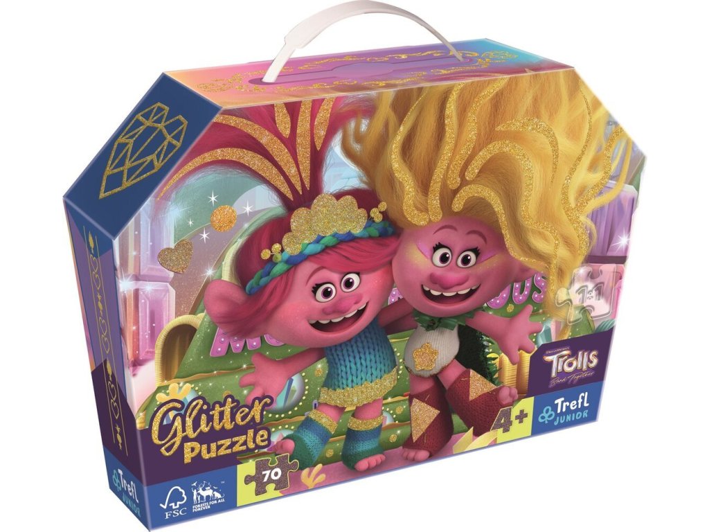 Trefl Puzzle 70 Glitter v kufríku - Trblietaví Trollovia