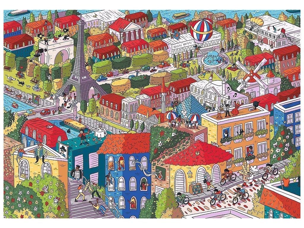 Paris je neuveriteľne farebné puzzle zo série Eye-Spy , ktoré v prezentovaných ilustráciách ukrýva veľa vtipných príbehov a prvkov. Pri ich riešení máte radosť nielen z pridávania každého dielika puzzle, ale aj z objavovania ďalších detailov ukrytých v obrázku. Staňte sa pozorovateľom každodenného života obyvateľov Paríža a nechajte sa prekvapiť množstvom detailov!