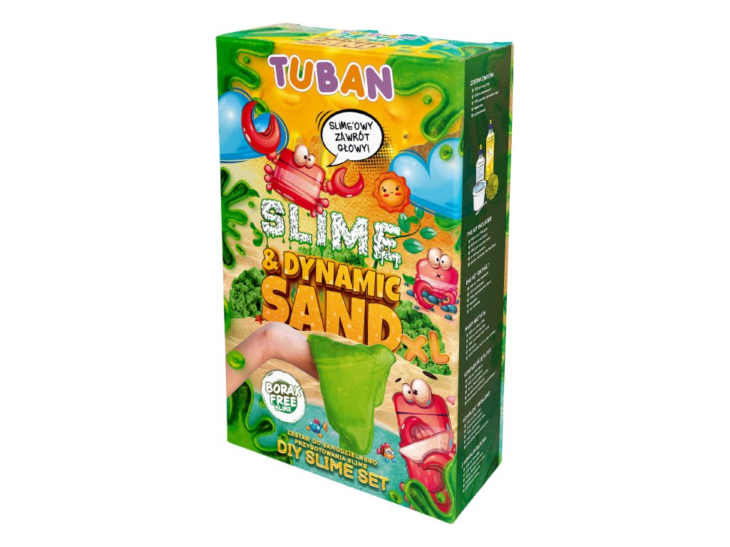 DIY Slime Sada na výrobu slizu s dynamickým pieskom XL Väčšie balenie pre ešte lepšiu hru Obľúbené modelovacie hmoty v jednej sade pokope. Vytvorte si sliz s dynamickým pieskom. V tejto sade nájdete všetko, čo na výrobu kvalitného slizu potrebujete. Všetko ešte vo väčších množstvách! Využite sadu na hranie pre viac detí alebo si vytvorte sliz viackrát. Z prísad si vytvoríte zelený sliz s jedinečnou štruktúrou, práve vďaka kinetickému piesku. Hra so slizom je ideálna na rozvoj jemnej motoriky, zmyslového vnímania a podporuje u detí kreativitu.Sada obsahuje:500 ml PVA lepidla,250 ml aktivátora,200 g kinetického piesku,špachtľu,nádobu na sliz.Zábavný, edukačný, aj relaxačný Pre deti môže byť manipulácia so slizom upokojujúca a relaxačná. Je to skvelý spôsob, ako si oddýchnuť a znížiť stres po náročnom dni. Objavte všetky DIY slizy a hotové Jiggly slimes rôznych farieb a vôní.Sliz je vyrobený z bezpečných a netoxických materiálov, ktoré sú šetrné k životnému prostrediu, neobsahujú borax. Po hre odporúčame sliz uložiť do priloženej nádobky a dobre uzavrieť.Senzorická hra umožňuje deťom objavovať svet okolo seba prostredníctvom zmyslov Hranie s rôznymi textúrami, farbami a vôňami nielenže stimuluje ich zmyslové vnímanie, ale taktiež podporuje ich kognitívny vývoj, jemnú motoriku a emocionálnu inteligenciu. S produktmi značky Tuban môžu deti preskúmavať rôzne senzorické podnety a objavovať nové spôsoby učenia a zábavy.