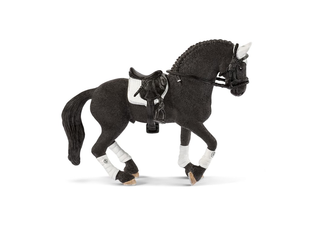 Frízsky kôň je ozdobou každého jazdeckého turnaja. Jeho silná telesná konštitúcia a jeho vyrovnanosť pochádzajú od chladnokrvníkov. Elegantný, pružná chôdza a hrdé držanie pochádza od ohnivých, španielskych koní. Biela čabraka na uši chráni frízskeho koňa pred hlasnými zvukmi a ušľachtilé bielej gamaše pred zraneniami. Zábavný fakt: Frízske kone sú vždy čierni. Na srsti nesmie mať žiadne biele znaky.Funkce: Sedlo a uzdu možné sňať. obsah: 1 × frízsky kôň jazdecký turnaj, 1 × sedlo, 1 × uzda. Rozmery: 15 x 8,2 x 18 cm. Figúrky Schleich sú mimoriadne detailné, láskyplne maľované a umožňujú deťom hrať sa a zároveň sa učiť. Nevhodné pre deti do 3 rokov. Odporúčaný vek: 5-12.