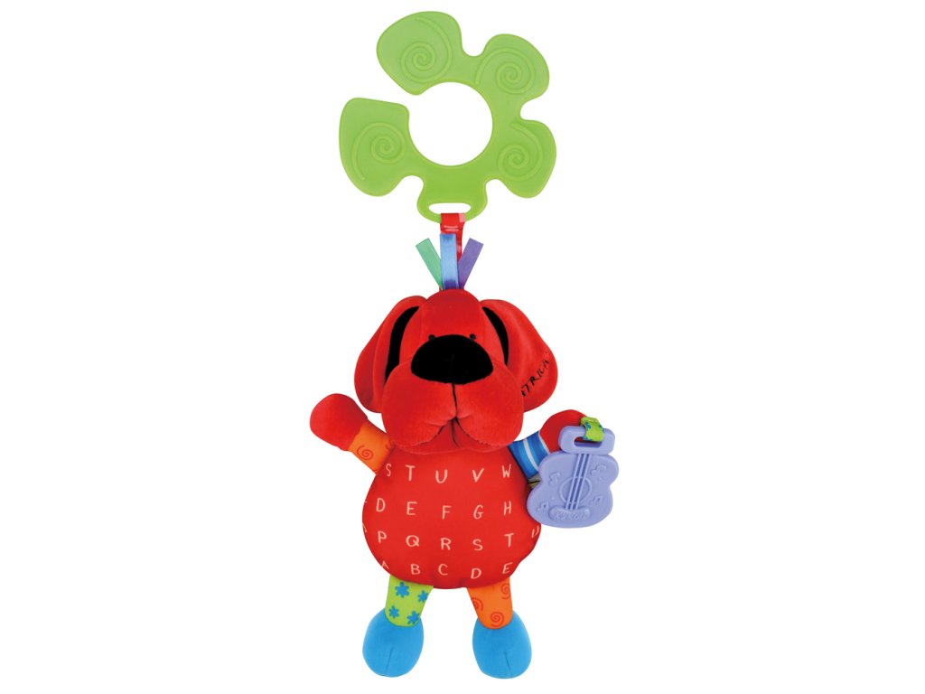 Stláčací a pískací psík je vybavený praktickým úchytom na kočík. Je možné prať ho v práčke pri teplote 30 stupňov. Samotný úchyt je potom možné použiť aj ako hryzadlo.