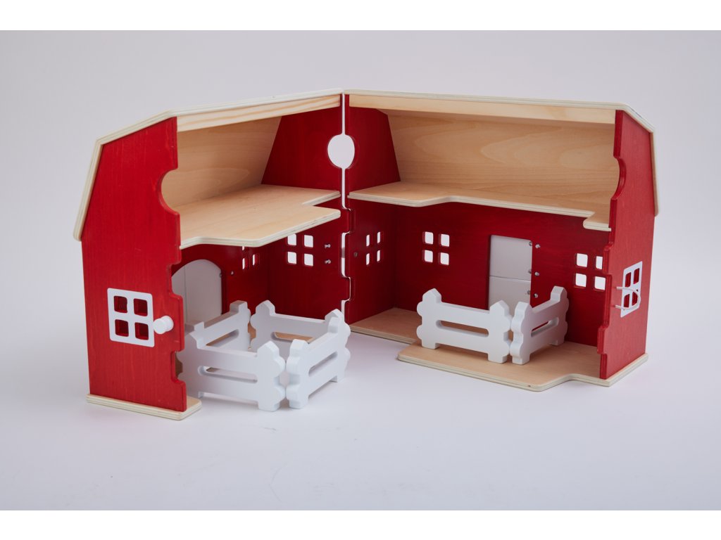 Limitovaná retro edícia – Veľká stodola Schleich® je vyrobená z dreva a je možné ju prakticky rozkladať a skladať zo strany. Vďaka tomu je priestranná stajňa so senom dobre prístupná a zábava môže začať. V streche je zabudované praktické držadlo na prenášanie farmy. Kto svoj pohľad zameria na pole, nemusí farmu dlho hľadať. Žiarivo červená farma so svojimi veľkými bránami do stodoly a vysokou strechou okamžite upúta pozornosť. Steny drevenej budovy sú natreté na červeno, okenné rámy a priečky dverí sú natreté bielo. Vyzerá to tak lákavo, že sa tam budete chcieť hneď pozrieť. Pohľad dovnútra odhaľuje: Na povale je dostatok miesta na seno a slamu. V stajni sú uložené biele dieliky plotu. Stačí ich len postaviť tak, aby ohraničili svieže pastviny. Tak, všetko je pripravené na sťahovanie! Kedy dorazia zvieratá? Rozmery stodoly: 30 x 35 x 23 cm. Rozmery balenia: 31 x 25,5 x 39,5 cm. Vek: 3+