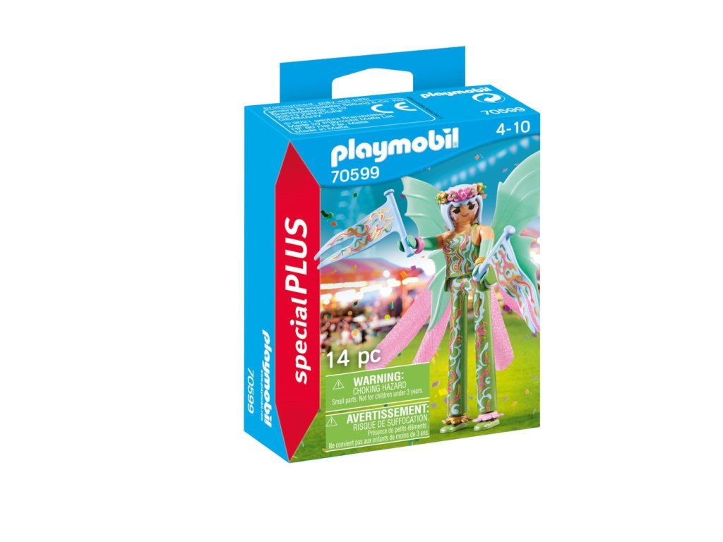 Na hudobnom festivale vystupuje umelkyňa na chodúľoch v kostýme víly. Víla s krídlami a zástavkami. Rozmery: 12 x 9,3 x 3,8 cm. Vek: 4+