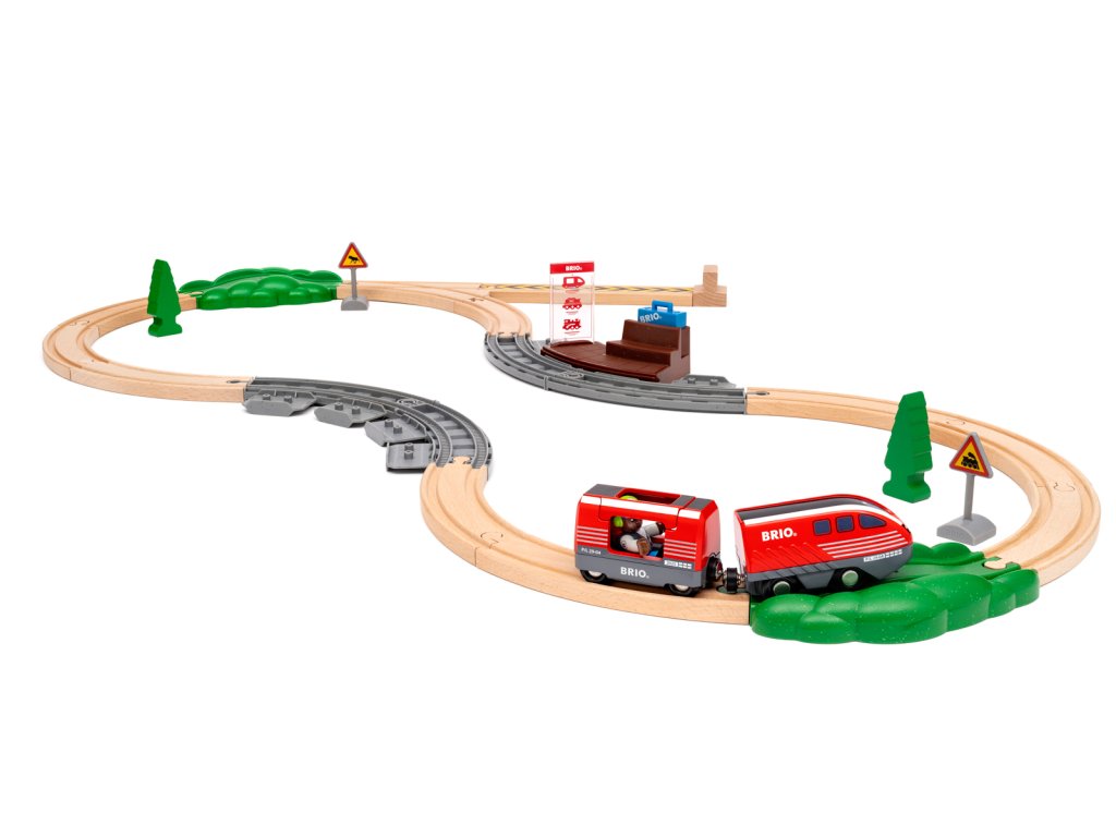 S vlakovou sadou a naťahovacím vláčikom si užijete veľa zábavy. Vláčik je poháňaný 100% energiou batoliat, nepotrebuje žiadne batérie, aby vykúzlil úsmev na detských tvárach. Nechajte cestujúcich nastúpiť na stanicu, natiahnite červený vláčik a sledujte, ako uháňa. Keď spomalí, stačí ho znova natiahnuť a hra môže pokračovať – bez zbytočných slzičiek. Vďaka jednoduchým funkciám a klasickým BRIO magnetom je táto vláčiková sada s vidieckym motívom skvelým rozšírením každej kolekcie BRIO World, ktoré prináša nekonečnú radosť malým strojvodcom. Sada obsahuje 28 dielov: 1x naťahovací vláčik, 1x vagón pre cestujúcich, 1x figúrka cestujúceho, 1x nástupište, 4x koľajnice, 2x drevený strom, 2x scénické koľajnice, 12x drevené koľajnice a množstvo ďalšieho príslušenstva. Certifikácia FSC®. Rozmery balenia: 27 x 37 x 6 cm. Vek: 3+