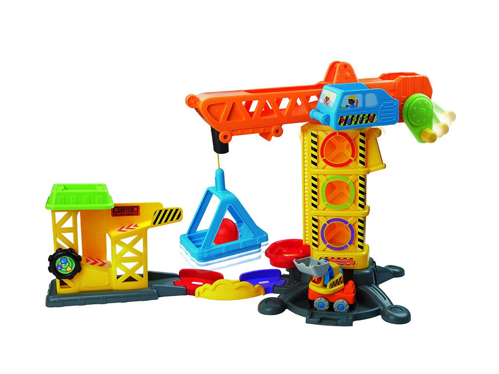 Tut Tut Autíčka - Žeriav. Interaktívna hračka s jedným Tut Tut hovoriacim autíčkom - bagrom. Hra s Tut Tut žeriavom umožňuje: • zostaviť si veľký žeriav pre Tut Tut autíčka • rozprávanie a rôzne reakcie Tut Tut autíčok na rôznych miestach žeriavu pomocou SmartPoint bodov. • zdvíhanie a prenášanie Tut Tut autíčok • zdvíhanie a prenášanie rôzne tvarovaných kameňov (sú súčasťou setu) • otáčanie zdvíhacieho ramena o 360 ° • jazdu s autíčkami Tut Tut výťahom hore a dolu • prekladanie autíčok so zvukovou odozvou • vkladanie a triedenie rôznych tvarov (kameňov ) do otvorov v žeriavu • otváranie a zatváranie brány aj okien • bager, ktorý je súčasťou setu, vie zdvíhať rýpadlo aj otáčať celú kabínou • bager tiež pozná desiatky roztomilých fráz, zaspieva 3 pesničky a zahrá 6 melódií. Žeriav je možné priamo prepojiť s ostatnými dráhami pre autíčka Tut Tut. Hra s Tut Tut Žeriavom rozvíja u detí predovšetkým: • motorické zručnosti • predstavivosť a kreativitu • slovnú zásobu. Rodičia tiež ocenia vysokú odolnosť hračky proti mechanickému poškodeniu i napríklad automatické vypínanie hračky, čo zaistí vyššiu životnosť batérie