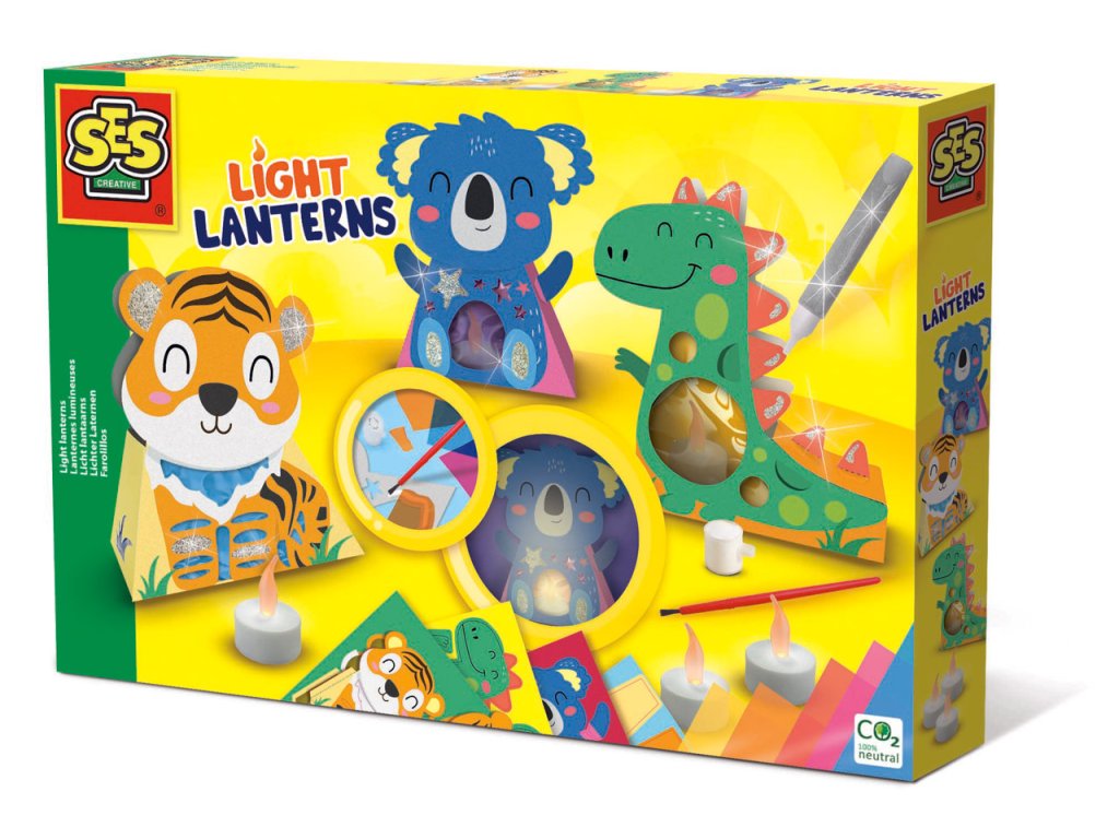 Skvelé, s touto sadou SES si môžete vyrobiť vlastné zvieracie lucerničky. Zvieratká jednoducho zložte, ozdobte farebnou fóliou a trblietkami. Vložte LED sviečku do každej lucerničky a pozrite sa, ako krásne svieti! Sada obsahuje: 3 LED sviečky (3x CR2032, batérie nie sú súčasťou balenia), 3 zvieracie lucerničky, 5 farebnách fólií, lepidlo, štetec, strieborné trblietavé lepidlo, návod. Rozmer balenia: 30 x 20 x 4 cm. Vek: 5+