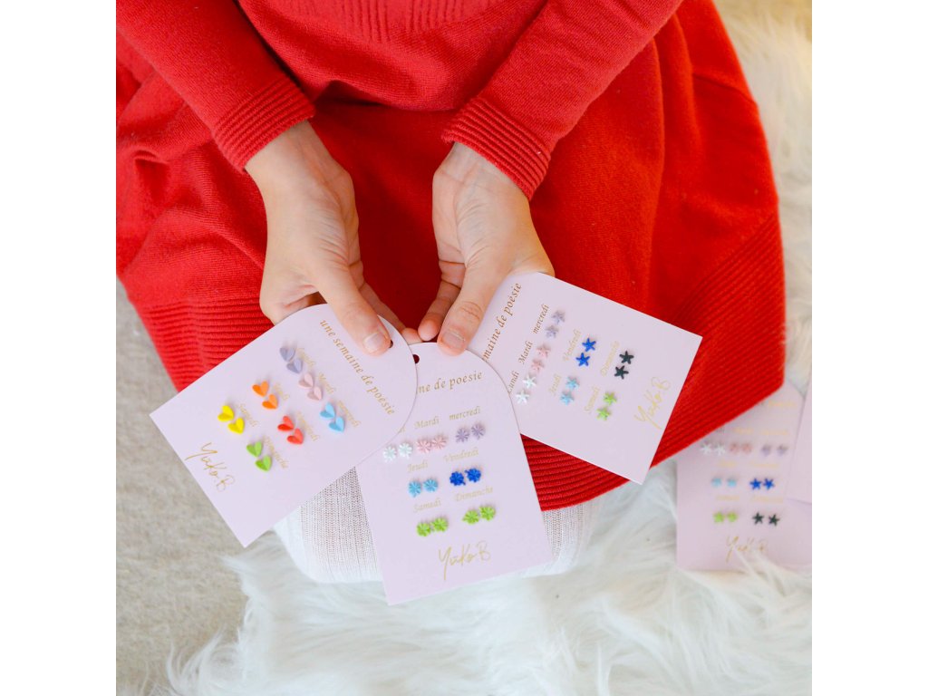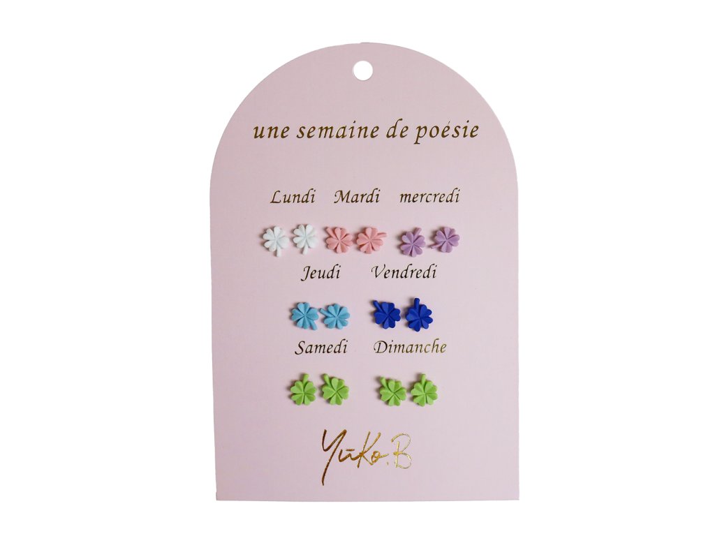 Náušnice na každý deň Štvorlístky 7 párov Meň farbu náušníc každý deň! Náušnice Štvorlístok od francúzskej značky Yuko B. sa stanú jedinečným doplnkom pre deti i dospelých. Všetkých 7 párov náušníc nájdete v jednej darčekovej sade. Náušnice sú vhodné ako malý darček pre všetkých, ktorí milujú byť zladení do posledného detailu.Náušnice Štvorlístok z bezpečných materiálov 7 párov náušníc je vyrobených z keramiky a nerezovej ocele, takže neobsahujú žiadne nebezpečné látky a nespôsobujú alergie. Plastický keramický povrch zaisťuje jedinečný vzhľad. Dizajny Yuko B. kombinujú francúzske aj svetové trendy. Dôležitá je pre značku aj kvalita a minimálny dopad na životné prostredie