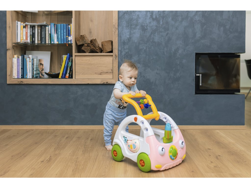 Roztomilé chodítko v tvare autíčka bezpečne prevedie dieťa prvými krôčikmi. Od 6 mesiacov slúži ako interaktívna hračka. Na boku chodítka sú umiestnené aktivity kocky, ktoré rozvíjajú motoriku a fantáziu. Ďalej je chodítko vybavená skladačkou či počítadlom. Súčasťou je aj interaktívny kľúč s tlačidlami, vďaka ktorým autíčko vydáva zvuky a svetelné efekty.