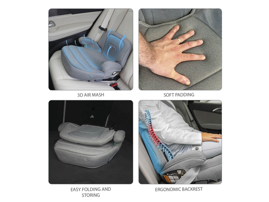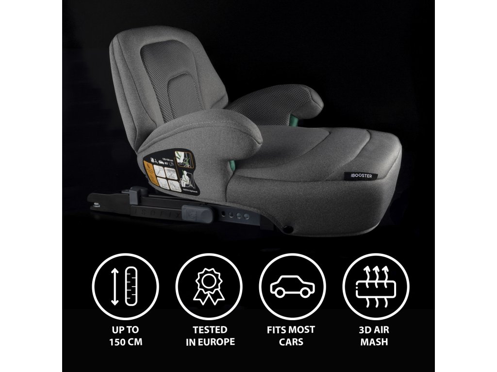 Podsedák iBooster bol testovaný v Európe a spĺňa najnovšiu bezpečnostnú normu i- Size . Do auta ho možno inštalovať pomocou isofixu a bezpečnostného pásu vozidla alebo iba pomocou bezpečnostných pásov vozidla. Indikátory rodičom ukážu, kadiaľ je potrebné pás viesť, aby perfektne chránil dieťa.