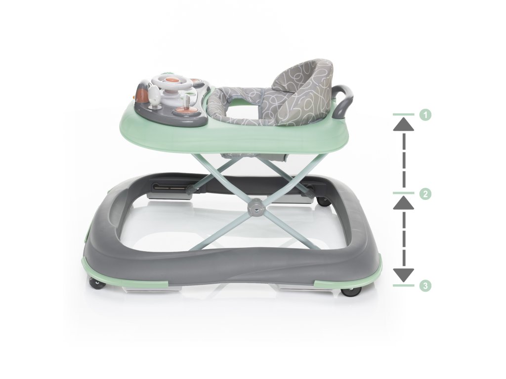 Aby bolo použitie chodúľky Fiesta pre deti čo najpohodlnejšie, dá sa pri nej nastaviť výška sedadla, a to do 3 polôh. Pritom na nácvik prvých krôčikov je v zadnej časti chodúľky Fiesta umiestnená tiež hrazdička. O zábavu dieťaťa sa postará odnímateľný interaktívny pultík, ktorý okrem mechanických hračiek disponuje aj melódiami, zvukmi auta a svetielkami. Chodúľka Fiesta tak pomáha nielen s precvičovaním chôdze, ale dieťa zábavným spôsobom zamestná a rozvíja všetky jeho zmysly, vrátane jemnej motoriky.