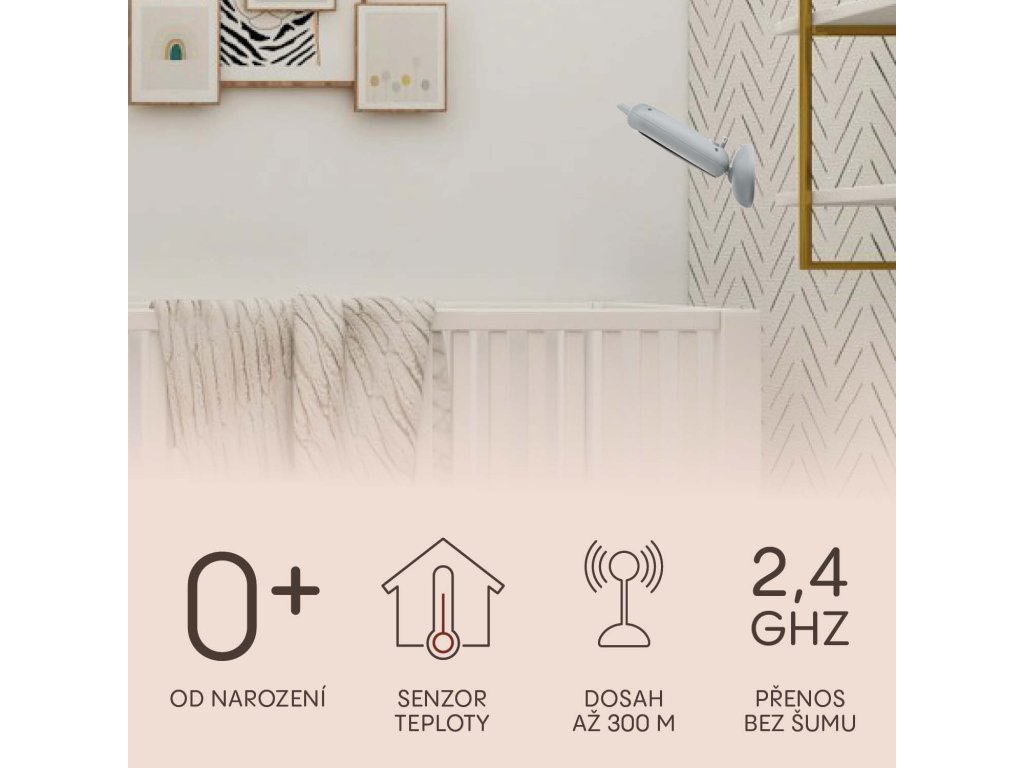 Pestúnka Static je plná šikovných vychytávok pre každú situáciu. Kedykoľvek môžete svoje dieťatko upokojiť na diaľku vlastným hlasom alebo pustiť upokojujúce melódie pre príjemné zaspávanie. Integrovaný teplomer vám pomôže vytvoriť ideálne podmienky na spánok – nielenže zobrazuje aktuálnu teplotu v miestnosti, ale tiež vás upozorní, ak by bola príliš vysoká. Pre pokojné noci oceníte úsporný nočný režim, ktorý automaticky vypne prenos zvuku a obrazu, keď je v miestnosti ticho. Pri akomkoľvek zvuku sa okamžite znova aktivuje.