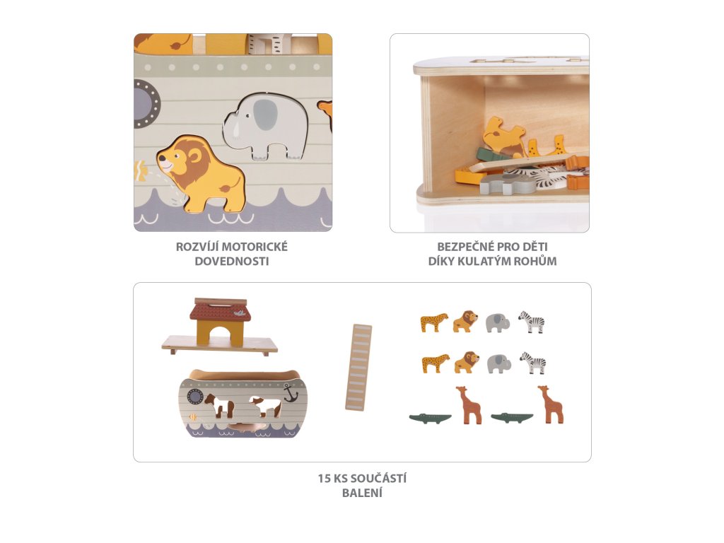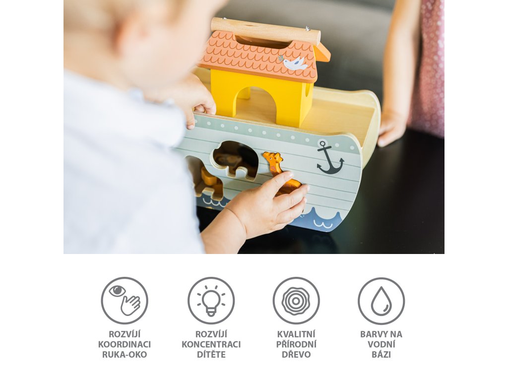 arche. Drevená skladačka rozvíja koordináciu ruka-oko, logické myslenie,
