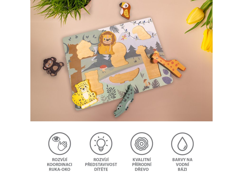 Drevené puzzle Džungľa sú skvelým spôsobom,