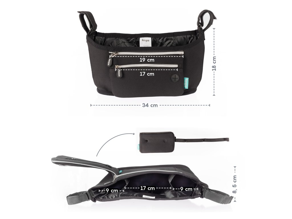 Pre lepšiu ochranu vašich vecí ponúkame neoprénový organizér na kočík, ktorý lepšie ochráni nevyhnutnosti proti vplyvom okolia. Hlavné centrálne vrecko má po stranách dva otvory na fľaše. Organizér sa hodí na väčšinu kočíkov a ľahko sa upevňuje pomocou suchých zipsov. Predná kapsičku môžete oddeľte a vziať kamkoľvek so sebou.