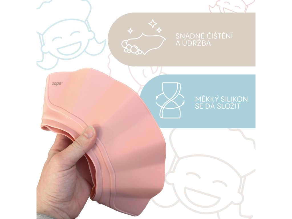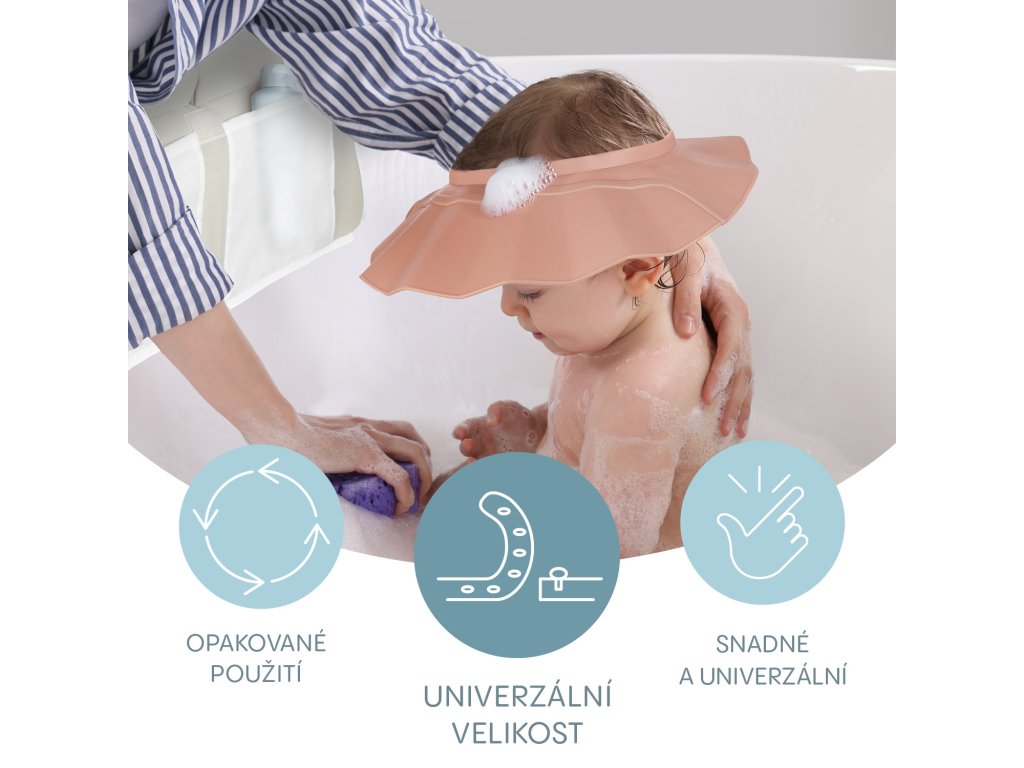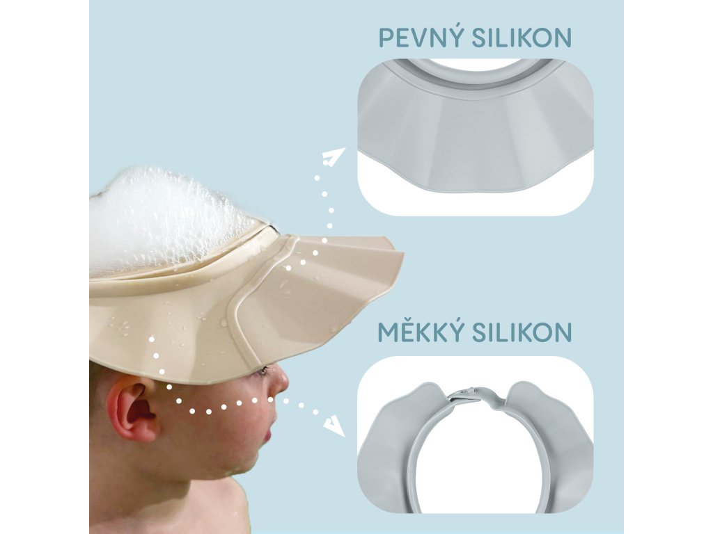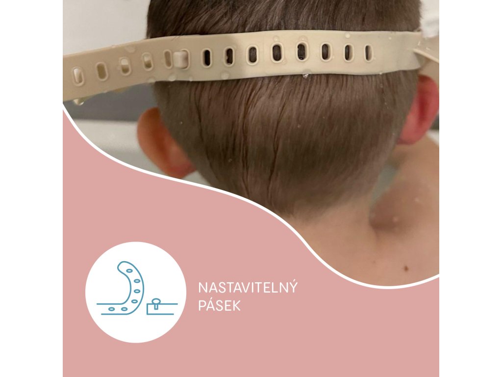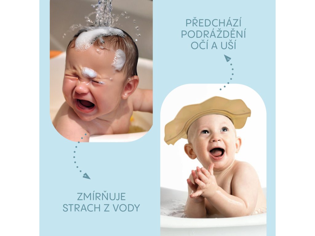 v očiach, ktorá štípe – náš silikónový kúpeľný šilt chráni citlivé oči a uši