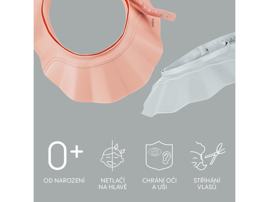 vášho dieťaťa pred vodou a šampónom. Vďaka ľahkému zapínaniu a jemnému materiálu