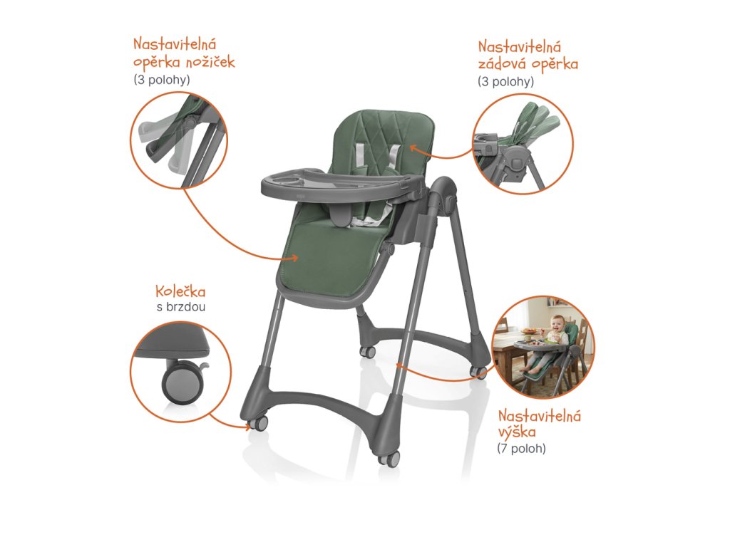 - 3 polohy chrbtovej opierky pre pohodlie pri jedle aj oddychu