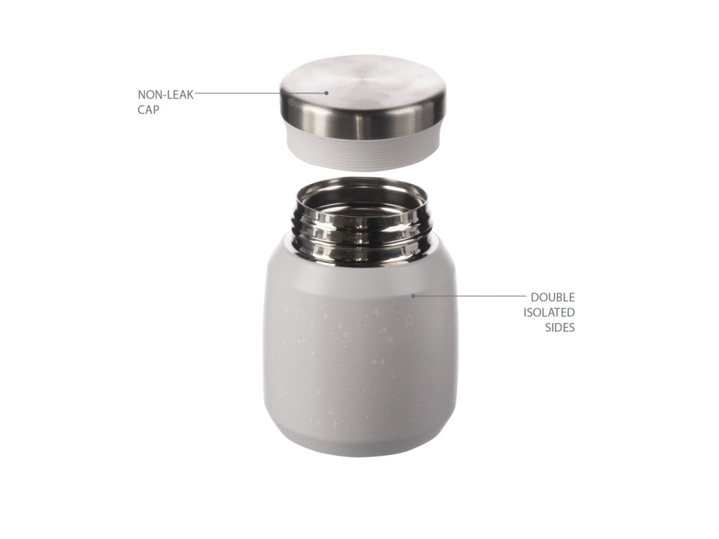 Vysokokvalitná termoska na jedlo a občerstvenie s objemom 300 ml udrží teplé jedlo až 12 hodín a studené jedlo až 24 hodín. Je vyrobená z kvalitnej nehrdzavejúcej ocele, ktorá je odolná proti korózii. Tesne priliehajúce viečko zaisťuje, že termoska nevyteká. Vďaka vákuovej izolácii sa termoska pri naplnení horúcim obsahom zvonku nezahrieva.