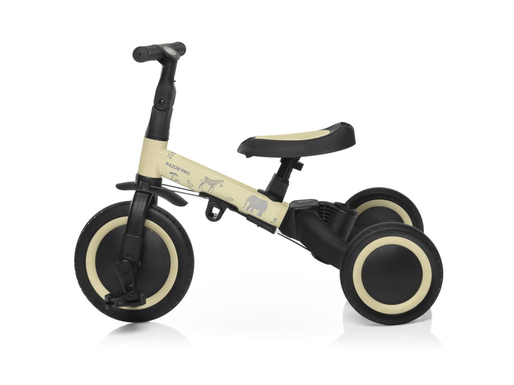 Vďaka šikovnej konštrukcii je možné jednotlivé časti ľahko odobrať alebo prestavať – bez potreby náradia. Prechod z trojkolky na odrážadlo či bicykel je otázkou niekoľkých minút. Trojkolka má navyše kompaktné rozmery, takže sa bez problémov zmestí do kufra auta a je vhodná aj na cestovanie.