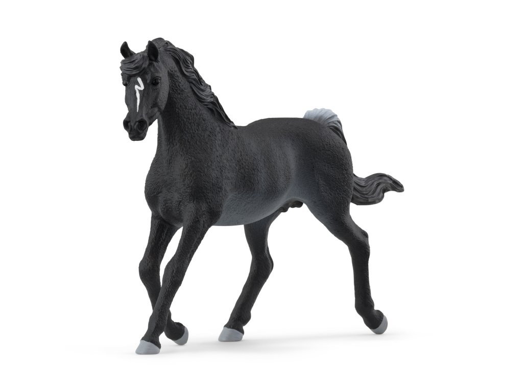Keď sa čierny arabský žrebec postaví vedľa snehovo bielej arabskej kobyly (predáva sa samostatne), tvoria spolu úžasný pár. Krásny plnokrvník však vyniká aj sám o sebe. So svojimi dlhými, ladnými nohami a štíhlym krkom vyzerá jednoducho úchvatne. Je ale tiež naozaj športovo založený a nič nemiluje viac ako poriadne konské dostihy. Jeho temperament sa k nemu dokonale hodí. Je temperamentný a spoločenský, ale tiež celkom citlivý. Rozmery figúrky: 10 x 15 x 4,5 cm. Vek: 5+