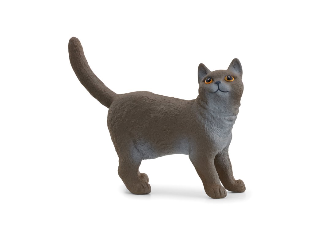 Máš tam niečo dobré pod zub? Britská krátkosrstá mačka so široko otvorenými očami vzhliadne a uprie svoj zrak na tanier. Kto by odolal? Chlpatá figúrka na hranie si samozrejme zaslúži maškrtu. Laškovne ochutnáva jedlo a potom si dôkladne očistí svoj trblietavý modrastý kožúšok. Má rada útulno a celé dni trávi doma. Von sa jej vôbec nechce. Radšej sa necháva rozmaznávať svojim pánom a užíva si dlhé maznanie na gauči. Tomu sa predsa nedá povedať nie, nie? Rozmery figúrky: 4,3 x 5,7 x 2 cm. Vek: 3+