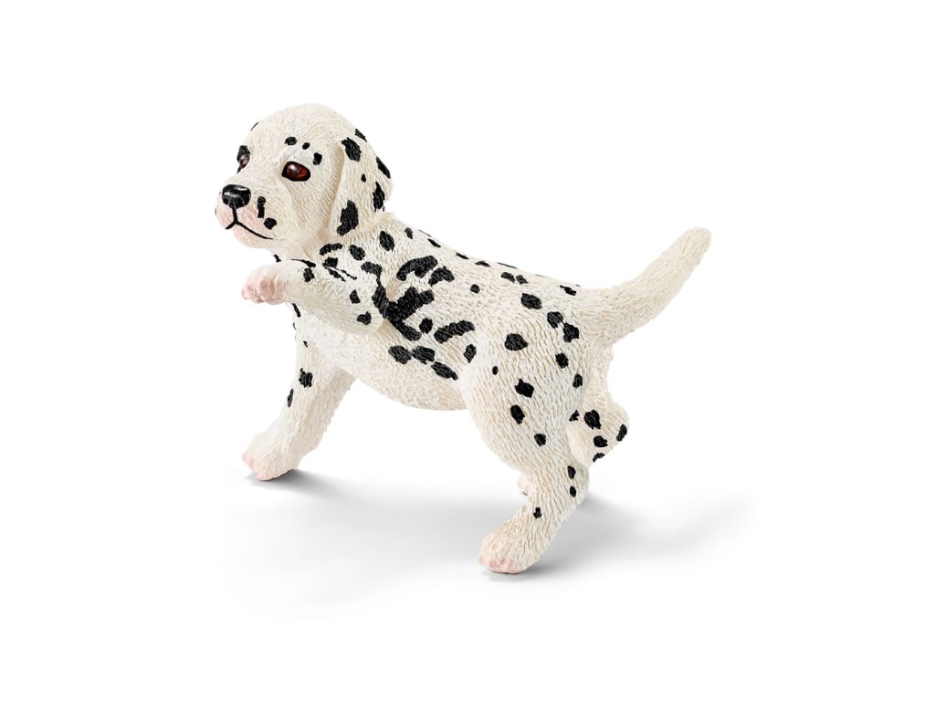 Dalmatínci pochádzajú z Chorvátska a sú to veľké, štíhle a elegantné psy. Ich fľaky sú tak fascinujúce a jedinečné ako ľudské odtlačky prstov. Dalmatínci sú predovšetkým maznavé rodinné psy, ale aj pozorné strážne a vytrvalé záchranárske psy. Obzvlášť dobre si rozumejú s koňmi, ale aj s inými zvieratami. Preto skôr sprevádzali hasičské autá v Anglicku a sú dodnes maskotom newyorských hasičov. Preto sa im často hovorí ´´hasičské psy´´. Mláďatá dalmatínca majú pri svojom narodení bielu srsť. Fľaky sa objavia až neskôr. Rozmer: 3,9 x 3,2 x 3,9 cm. Nevhodné pre deti do 3 rokov. Odporúčaný vek: 3-8