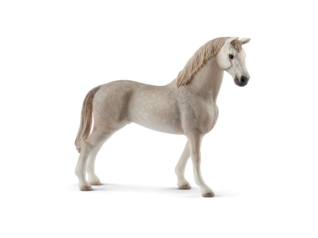 Holštajnský kôň je plemeno pochádzajúce zo Šlezvicka-Holštajnska v severnom Nemecku, kde má korene už od 13. storočia. Holštajnský kôň je vysoký 160-170 cm a elegantné. Holštajnský kôň má vynikajúce nohy s veľmi dobre formovanými kĺby, pevnými kosťami a krátkymi a silnými holeňami. Vďaka tomu je to špičkový skokan. Hodí sa aj pre drezúru, na dostihy a pre súťaže všestrannej spôsobilosti čiže military. Mimo to stále patrí medzi najlepšie kočiarové kone. Kone môžu mať rozličné farby, od vraníka cez hnedáka a ryšiaka až po sedákov. Figúrka je vyrobená z kvalitného gumového materiálu a je ručne maľovaná. Rozmer: 12,7 x 11,1 x 3,4 cm. Nevhodné pre deti do 3 rokov. Odporúčaný vek: 5-12