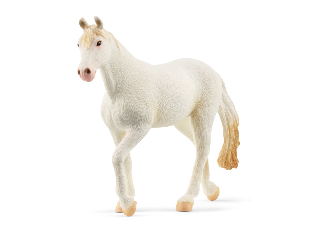 Snehobiela srsť, biele kopytá a svetlo ružové nozdry… Kobyla plemena Camarillo je skutočná krásavica. Niet divu, že sa rada predvádza na prehliadkach. Jej dokonalá srsť je skutočnou raritou. Je to preto, že všetky čisto biele kone plemena Camarillo pochádzajú z jedinej malej rodiny koní z USA. Vôbec prvý žrebec sa volal Sultan. A aké meno dáš tejto krásnej kobyle ty? Rozmery: 13,5x13,5x3cm. Vhodné pre deti od 3 rokov.