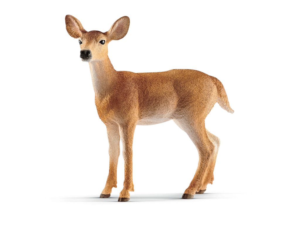 Samice Jelenci běloocasého veľmi dobre vidí a počuje, najviac sa však spoliehajú na svoj čuch a svoju rýchlosť. Sú veľmi svižné a dovedú bežať rýchlosťou až 48 km / h. Zimné sivohnedá srsť neslúži len na maskovanie pred dravými zvieratami. Chlpy sú duté, a preto veľmi dobre akumulujú telesné teplo. Samice Jelenci běloocasého môžu skočiť súčasne až 3 m do výšky a 9 m do diaľky. Rozmer: 8,6 x 8,5 x 3,5 cm. Nevhodné pre deti do 3 rokov. Odporúčaný vek: 3-8
