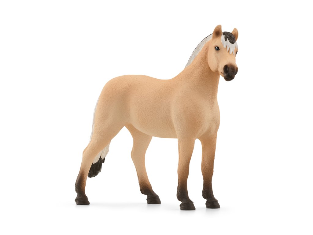 Pevne stavaný valach fjordského koňa skúma svoje okolie ostražitým pohľadom. Nastražuje svoje malé špicaté uši a načúva. Počuje niekoho prichádzať cez pole? Zamyslene nakloní hlavu. Nie, pravdepodobne to nič nebolo – len vietor zašušťal lístím. Je to naozaj škoda, pretože spoločenský valach s výrazným pruhom na chrbte a dvojfarebnou hrivou má vážne veľmi rád spoločnosť. Možno si len tak odklusá ku kobyle fjordského koňa (predáva sa samostatne) na kus reči. Veľkosť: 13,9x11x3cm. Vek: 3+