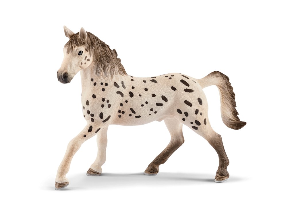 Žrebce z plemien Knabstrupper a Appaloosa sú si veľmi podobní, obe plemená totiž majú na srsti škvrny. Obe tieto plemená sa však vyvíjala na sebe nezávisle. Domovom plemena Knabstrupper je Dánsko, zatiaľ čo Appaloosa pochádza z USA. Knabstrupper sú obľúbení vďaka svojmu sfarbenia, ale sú to aj talentovaní koňa pre drezúru. Zábavný fakt: Kone Knabstrupper sú vhodní pre vysokú školu a s ľahkosťou zvládajú všetky úlohy drezúry. Figúrky Schleich sú mimoriadne detailné, láskyplne maľované a umožňujú deťom hrať sa a zároveň sa učiť. Rozmer: 14 x 5,3 x 10,4 cm. Nevhodné pre deti do 3 rokov. Odporúčaný vek: 5-12