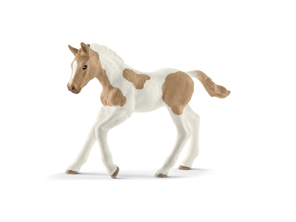 Žriebätá amerického pastierskeho kone majú už pri narodení krásne škvrny, tak typické pre toto plemeno. Títo kone sú vlastne strakaté sfarbenie jedinci plemena Quarter Horse. Skôr však bolo možné do plemennej knihy zapisovať iba jednofarebná zvieratá. Americkí pastierske kone ale boli natoľko obľúbení, že boli o dva roky neskôr zavedení ako samostatné plemeno. Zábavný fakt: Americký dobytkársky kôň je teda oficiálnym plemenom koní až od roku 1965. Figúrky Schleich sú mimoriadne detailné, láskyplne maľované a umožňujú deťom hrať sa a zároveň sa učiť. Rozmer: 8,1 x 7,9 x 2,2 cm. Nevhodné pre deti do 3 rokov. Odporúčaný vek: 5-12